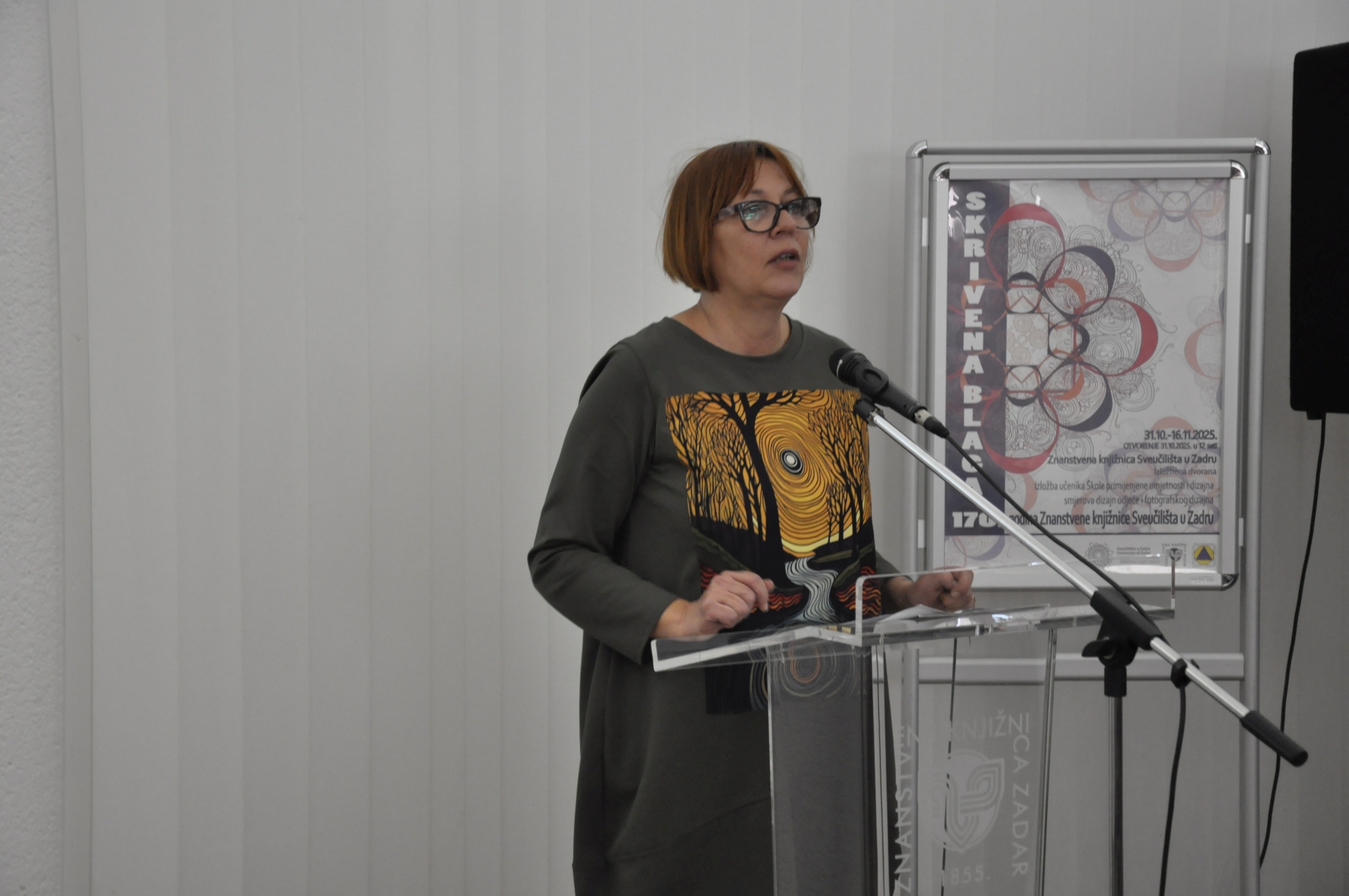 Ostale fotogalerije 22.10.2025.: posjet veleposlanika Kraljevine Belgije Znanstvenoj knjižnici Sveučilišta u Zadru10.10.2025.: svečano predavanje veleposlanika Republike Italije u Hrvatskoj NJ. E. Paula Trichilla "LETTERATURA E DIPLOMAZIA"30.9.2025.: radionica "GRAFIČKI UREDNICI NA TRAGU RENESANSE"18.07.2025. izložba Aldine: izbor tiskarskih rariteta iz fonda Znanstvene knjižnice Sveučilišta u Zadru10.6.2025.: izložba "ZADARSKE SPORTSKE PRIČE - IZBOR IZ FONDA GRADSKE KNJIŽNICE ZADAR I ZNANSTVENE KNJIŽNICE SVEUČILIŠTA U ZADRU"27.5.2025.: predavanje Filipa Lenića u sklopu izložbe povodom obilježavanja 150 godina od dolaska cara Franje Josipa I. u Zadar i Dalmaciju8.5.2025.: predstavljanje poezije akademika Drage Štambuka7.5.2025.: XIV. DANI SEKSUALNOSTI U ZADRU29.4.2025.: IZLOŽBA I TRIBINA „SA ZADROM U MISLIMA“19.3.2025.: predavanje "POETSKA HIPERBOLA – OD RETORIKE DO INTERPRETACIJE" doc. dr. sc. Tina Lemca10.3.2025.: predstavljanje zbornika radova "MOLIÈRE U HRVATSKOJ KULTURI"17.2.2025.: promocija sveučilišnog udžbenika "BITI ZAPOSLEN RODITELJ DJETETA S TEŠKOĆAMA U RAZVOJU: UMIJEĆE (NE)MOGUĆEG"4.12.2024.: javno predavanje "KRETANJE LJUDI I IDEJA NA DALMATINSKOM VIŠEGRANIČJU: RAZVOJ POSJEDA BORELLI U UVJETIMA BROJNIH IZAZOVA RANOG NOVOG VIJEKA" dr. sc. Dubravke Mlinarić26.11.2024.: predstavljanje knjige i projekta "BAJKA O NOTICAMA"22.11.2024.: otvorenje 31. izložbe "IZDAVAŠTVO NA ZADARSKOM PODRUČJU"20.9.2024.: predstavljanje dva izdanja Desničinih susreta9.7.2024.: otvorenje izložbe "BASTION I BIVŠA CRKVA SV. NIKOLE U SKLOPU ZADARSKOG FORTIFIKACIJSKOG SUSTAVA"23.5.2024.: otvorenje izložbe "NAVIGACIJA POMOĆU SLIKA I ZAPISA – IZLOŽBA STARIH POMORSKIH KARATA I PLOVIDBENIH PRIRUČNIKA"7.5.2024.: otvorenje izložbe "NIKOLA TOMMASEO U FONDU ZNANSTVENE KNJIŽNICE"2.5.2024.: POSJET JAPANSKOG VELEPOSLANIKA23.4.2024.: FESTIVAL ZNANOSTI U ZNANSTVENOJ KNJIŽNICI SVEUČILIŠTA U ZADRU12.4.2024.: predavanje "NOVOSTI IZ TEORIJE POEZIJE" doc. dr. sc. Tina Lemca9.4.2024.: predavanje "DISLEKSIJA I ZVUČNE KNJIGE"22.3.2024.: ZADAR ČITA 2024. - dodjela nagrada20.3.2024.: predstavljanje publikacija nastavnika Odjela za kroatistiku Sveučilišta u Zadru18.3.2024.: izložba i predavanje "KOMPLEKS ŽENSKOG ODGAJALIŠTA SV. DIMITRIJA U ZADRU"12.03.2024.: predavanje "ŠTO KAD DIJETE NE PROGOVORI NA VRIJEME?"06.03.2024.: predavanje "SURADNJA LOGOPEDA I RODITELJA U OTKRIVANJU MOGUĆIH UZROKA REGRESIJE U KOMUNIKACIJSKOM I KAŠNJENJA ILI ZASTOJA U JEZIČNOM RAZVOJU"19.12.2023.: predavanje "BAŠTINA HUMANOSTI U ZADRU: 145 GODINA HRVATSKOGA CRVENOG KRIŽA"19.12.2023.: predavanje "PRIČAMO O ALKOHOLU! I PITAMO VAS: PIJU LI VAŠA DJECA?"15.12.2023.: predstavljanje romana "TONY" Nikole Marinkovića7.12.2023.: predavanje "UMJETNA INTELIGENCIJA (AI) I OBRAZOVANJE: PRIJETNJE, PRILIKE, PERSPEKTIVE"22.11.2023.: otvorenje 30. izložbe "IZDAVAŠTVO NA ZADARSKOM PODRUČJU"14.11.2023.: IZLOŽBA FOTOGRAFIJA O ŠEĆERNOJ BOLESTI10.11.2023.: predavanje "TERAPEUTSKA ULOGA FOTOGRAFIJE U PODRUČJU KULTURE I OBRAZOVANJA"6.11.2023.: PREDSTAVLJANJE PROŠIRENOG IZDANJA I PRETISKA KNJIGE PETRA KUNIČIĆA "HRVATI NA LEDENOM MORU"25.10.2023.: otvorenje izložbe "BAŠTINA HUMANOSTI U ZADRU: 145 GODINA HRVATSKOGA CRVENOG KRIŽA"18.10.2023.: MJESEC HRVATSKE KNJIGE U ZNANSTVENOJ KNJIŽNICI ZADAR28.9.2023.: predstavljanje romana "LA VERDAD VERDADERA" Nikole Marinkovića7.9.2023.: otvorenje izložbe "STARI ATLASI - NOVE PRIČE"18.8.2023.: KULTURNO TURISTIČKA RUTA "ZADAR – LA BELLE ÉPOQUE"19.7.2023.: IZLOŽBA SLIKA "LJETNI REZIME" ANE JAGIĆ5.7.2023.: KOPNENA VRATA U ZADRU6.6.2023.: ZORANIĆEVE "PLANINE" U ZVUKU, SLICI I KNJIŽEVNOJ RIJEČI18.5.2023.: predstavljanje pet zbirki pjesama Jose Štuline5.5.2023.: otvorenje izložbe "MOLIÈRE U FONDU ZNANSTVENE KNJIŽNICE ZADAR"3.5.2023.: predavanje "MEDIJSKA PISMENOST IZMEĐU KRITIČKOG PROMIŠLJANJA I MANIPULACIJA" doc. dr. sc. Nenada Vertovšeka28.4.2023.: predstavljanje knjige doc. dr. sc. Tina Lemca "O PJESMI PJESMOM"27.4.2023.: predavanje izv. prof. dr. sc. Vere Graovac Matassi "POPISI STANOVNIŠTVA - NEKAD I SAD"19.4.2023.: izložba i radionica "OŽIVIMO STARE RECEPTE: KULINARSKA BAŠTINA U RUKAMA MLADIH"20.3.2023.: predavanja "UNIVERZALNOST MOLIEREOVE KOMIKE I NJEZINA HRVATSKA RECEPCIJA" izv. prof. dr. sc. Mirne Sindičić Sabljo i prof. dr. sc. Divne Mrdeže Antonine17.3.2023.: predavanje "predavanje "JEZIK KAO BAŠTINA" dr. sc. Ivane Kurtović Budja24.2.2023.: otvorenje izložbe "SVETCI TITULARI ZADARSKIH CRKAVA" Stipana Kujundžića Šuntića17.2.2023.: predavanja "KUKCI U KUHINJI" I "INDUSTRIJSKI PREHRAMBENI PROIZVODI - ŠTO ZAPRAVO JEDEMO?"8.2.2023.: predstavljanje knjige "ŽIVA FIZIKA" dr. sc. Zdeslava Hrepića2.2.2023.: izlaganje prof. Mirte Tomas "NA PUTU PREMA ŽIVOM SVJETLU (SVJEDOČANSTVO O AFRICI)"16.1.2023.: predavanje dr. sc. Tomislava Sunića "METODA NOVE INKVIZICIJE - LIBERALNI HIGIJENSKI NOVO-GOVOR, NOVA VRSTA POLITIČKE REPRESIJE"22.11.2022.: otvorenje izložbe "IZDAVAŠTVO NA ZADARSKOM PODRUČJU"11.11.2022.: DAN GRADA - ZADARSKA TURISTIČKA RUTA NADAHNUTA BAŠTINOM ZNANSTVENE KNJIŽNICE: „ZADAR – LE BELLE EPOQUE TOUR“11.11.2022.: IZLOŽBA 15. MEĐUNARODNE LIKOVNE KOLONIJE 2022.4.11.2022.: predstavljanje zbirke pjesama "DIVLJA NJEŽNOST" Franka Sorića26.10.2022.: otvorenje izložbe "SPOMEN NA PRVU SAMOSTALNU IZLOŽBU VLAHE BUKOVCA U ZADRU - GRADSKA LOŽA, 26. LISTOPADA 1884."3.10.2022.: otvorenje izložbe knjiga Tomislava Marijana Bilosnića2.8.2022.: otvorenje izložbe "OLUJA '95."1.7.2022.: otvorenje izložbe "DALMACIJA U MOM OKU"3.6.2022.: otvorenje izložbe i predavanja "OSTAVŠTINA ANTE KUZMANIĆA"25.4.2022.: predstavljanje knjige "STRATEŠKO KOMUNICIRANJE DRŽAVA" Bože Skoke20.4.2022.: manifestacija "I ZADAR JE MARULIĆEV"2.4.2022.: izložba "LEON I PRIJATELJI"24.3.2022.: predstavljanje knjige "ZADAR - POETSKA RAZGLEDNICA"22.3.2022.: predavanje izv. prof. dr. sc. Kornelije Kuvač-Levačić "KNJIŽEVNOST KOJA LIJEČI