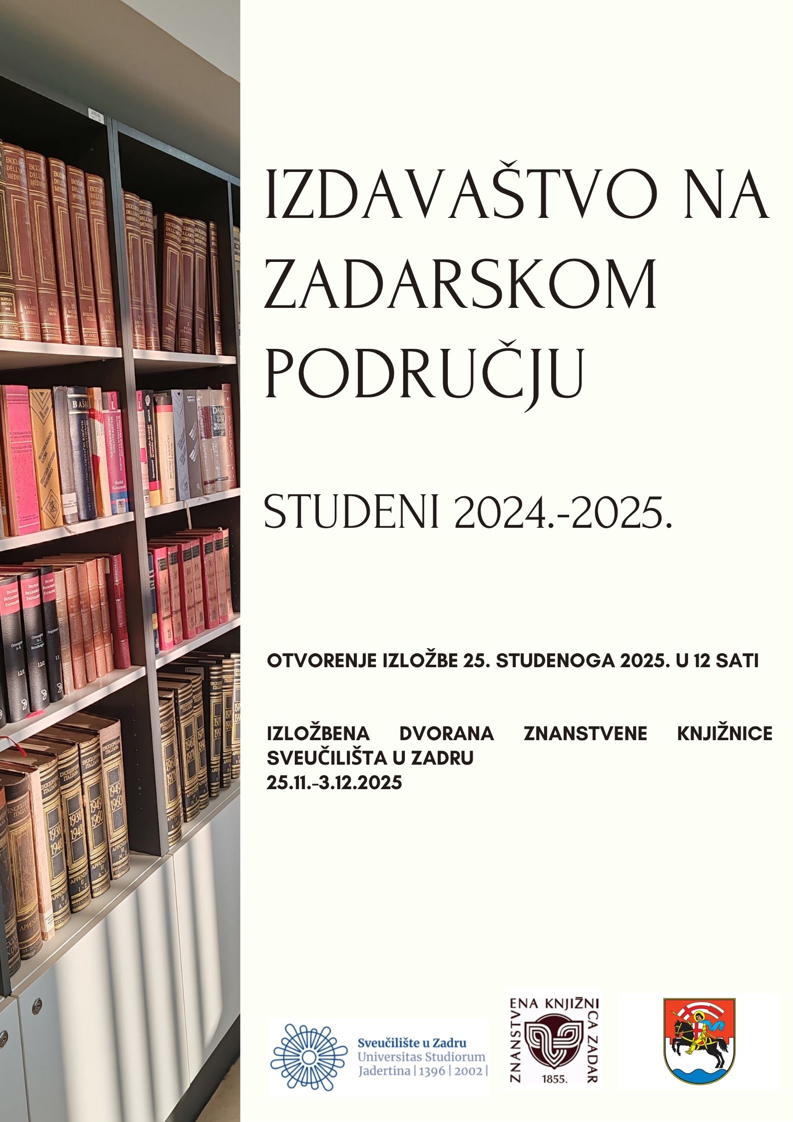 U utorak, 25. studenoga, u 12:00 sati, u Izložbenoj dvorani Znanstvene knjižnice Sveučilišta u Zadru svečano će se otvoriti 32. tradicionalna godišnja izložba „Izdavaštvo na zadarskom području 2024. – 2025.“