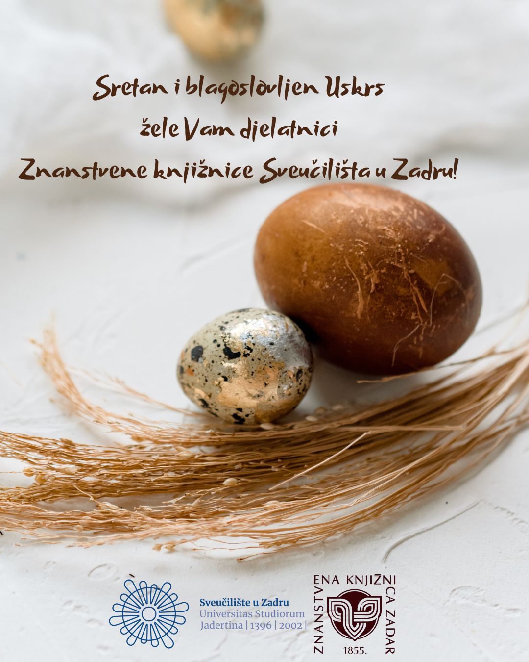 Sretan i blagoslovljen Uskrs žele vam djelatnici Znanstvene knjižnice Sveučilišta u Zadru!